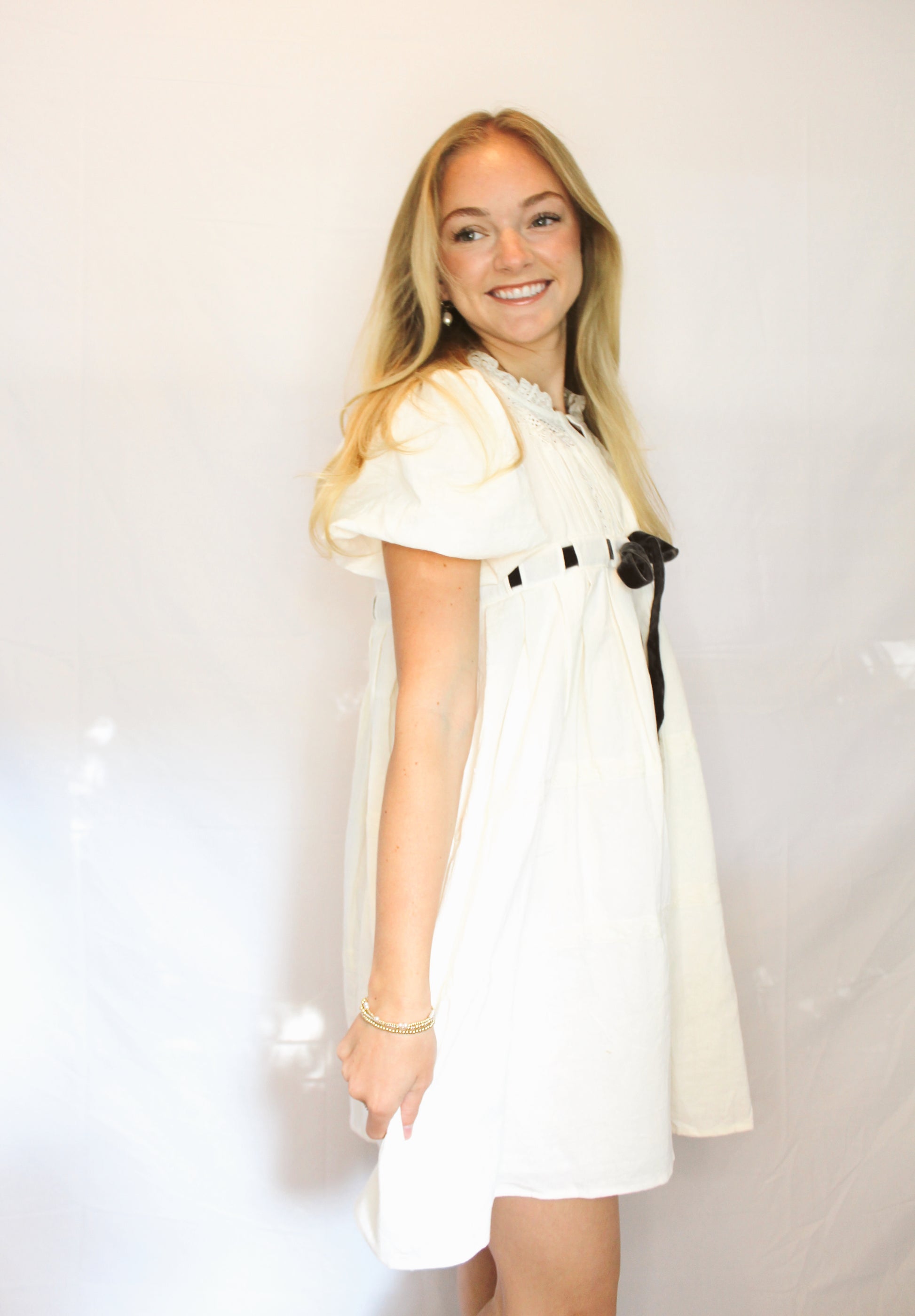 Sweet, simple, and full of charm—this cream babydoll dress is a modern take on vintage femininity