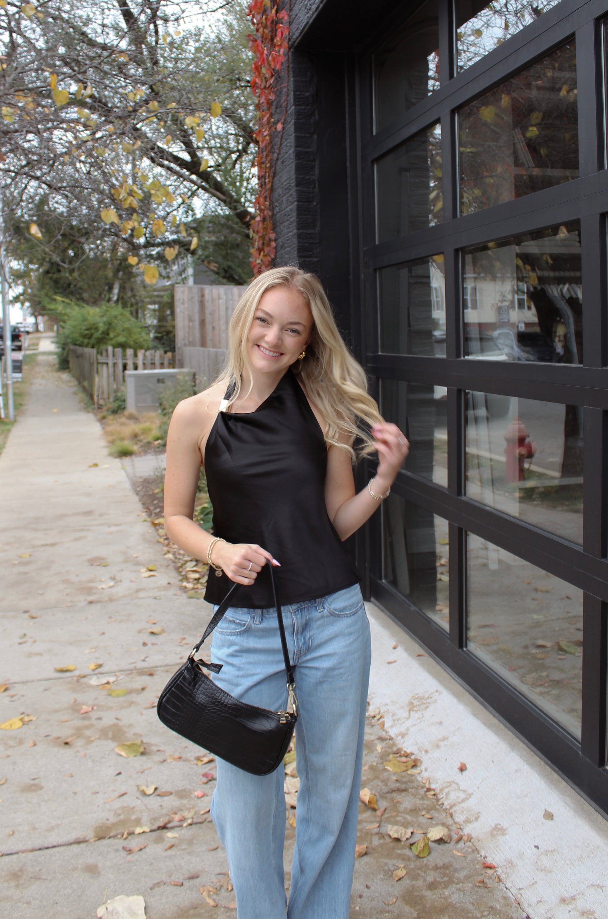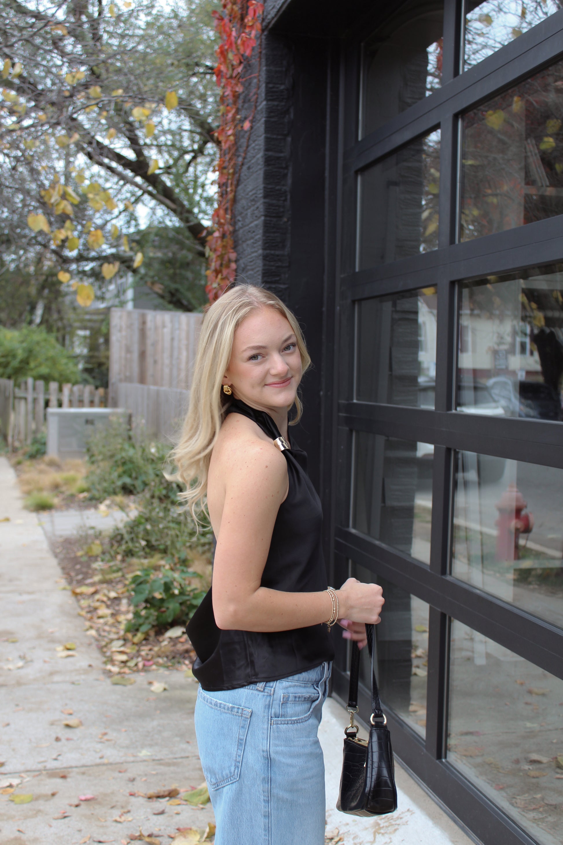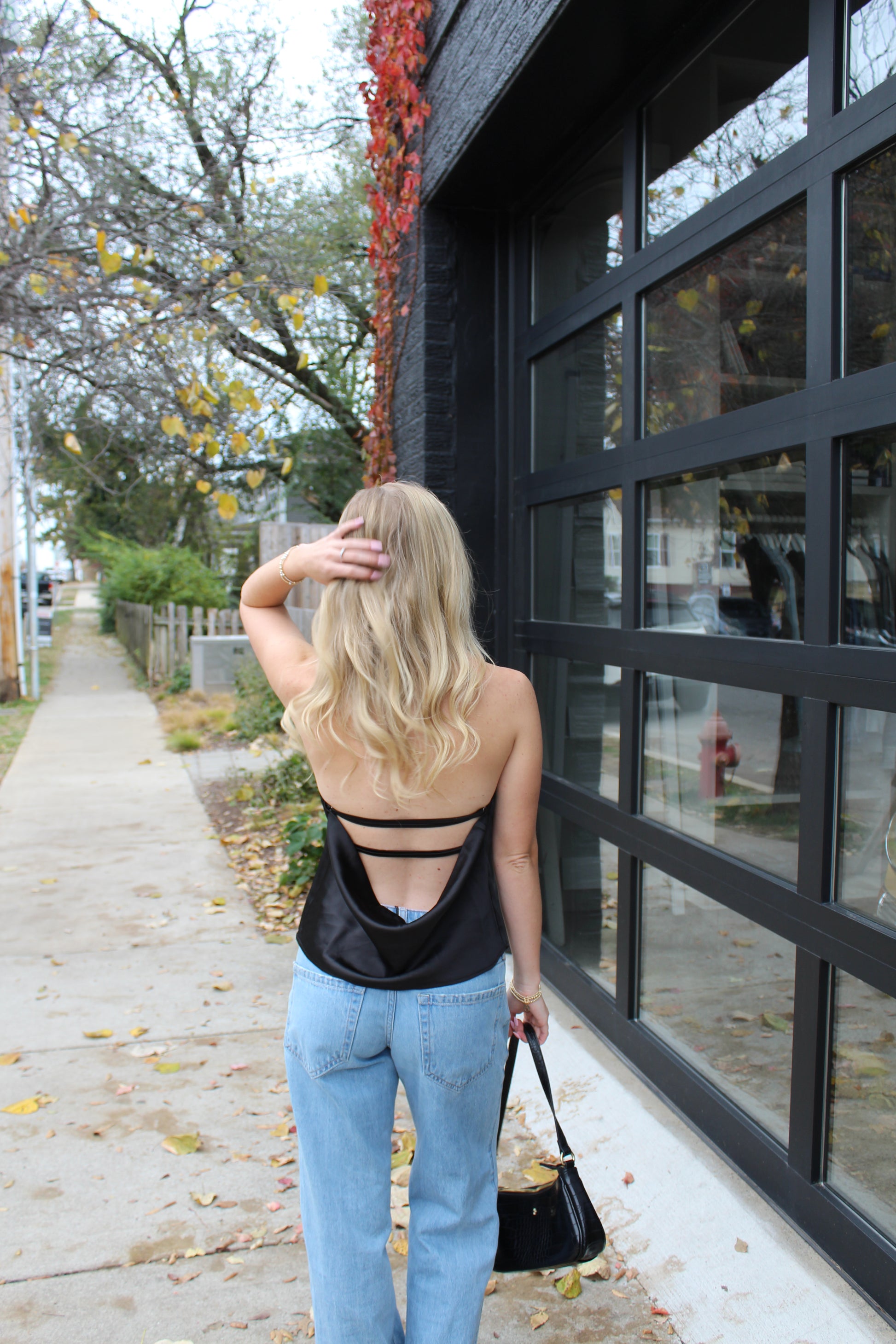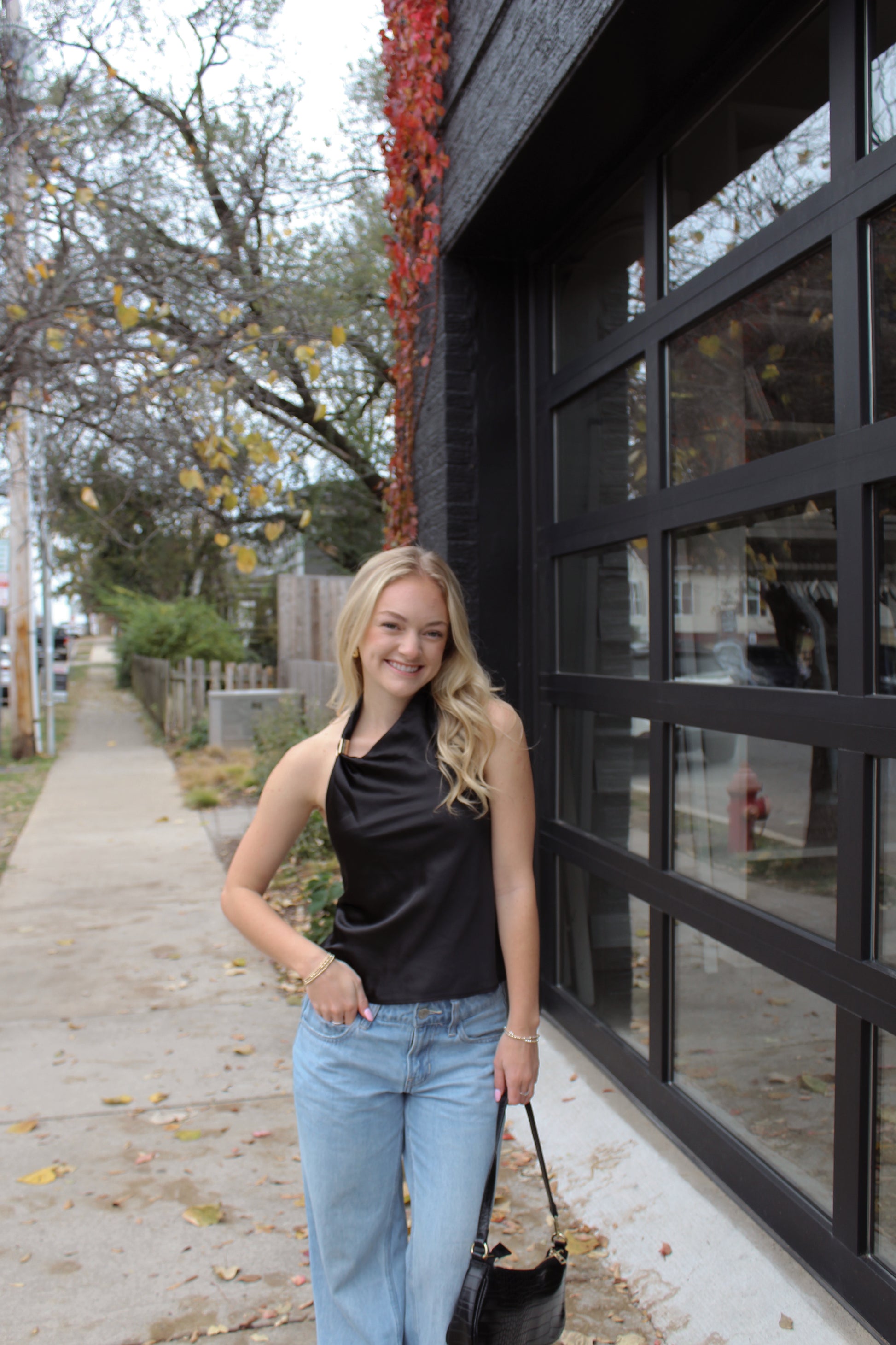 • Minimalist sophistication defines this black satin halter — your new go-to top for elevated everyday style