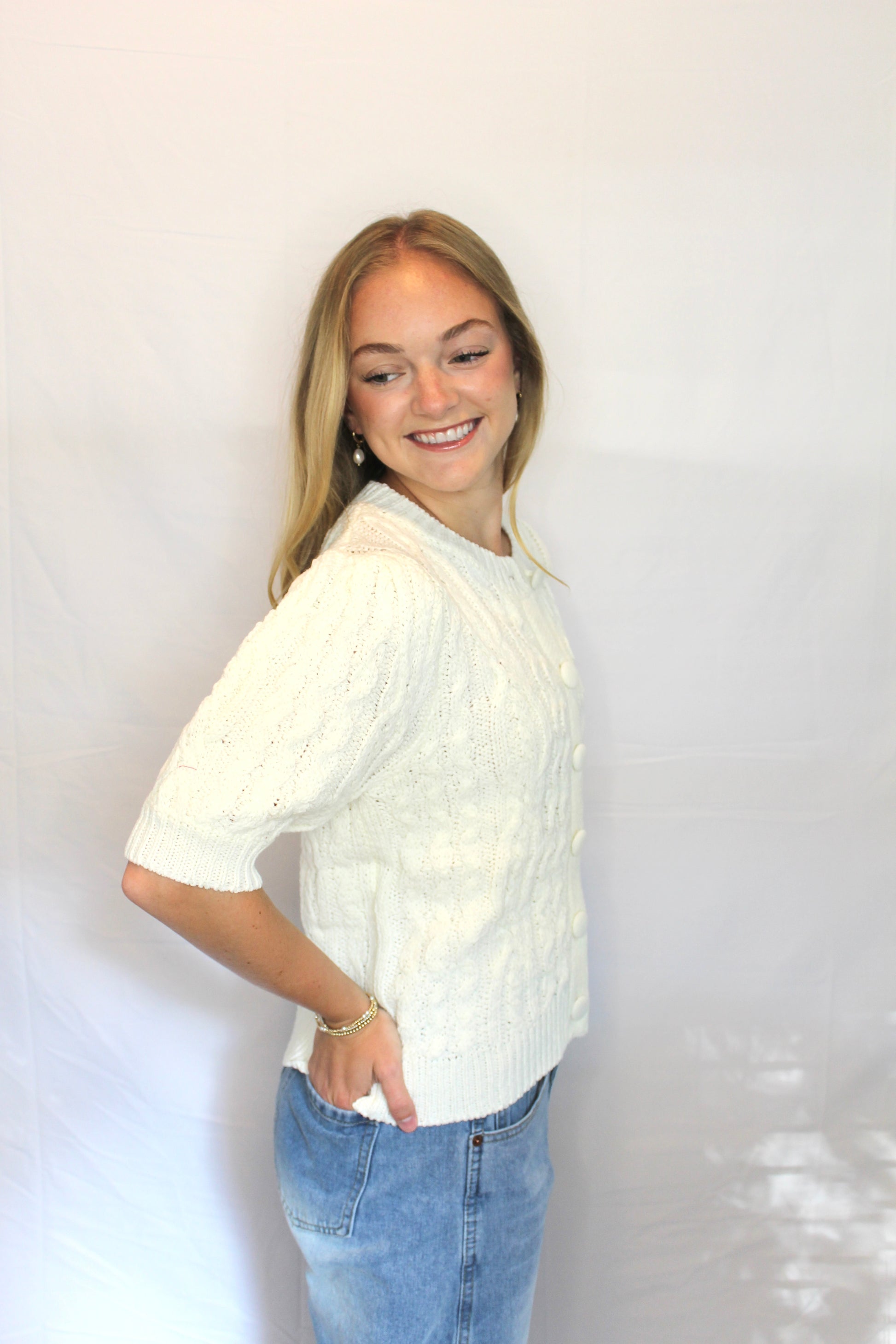 Vintage charm meets modern comfort in this sweet and structured short-sleeve cardigan